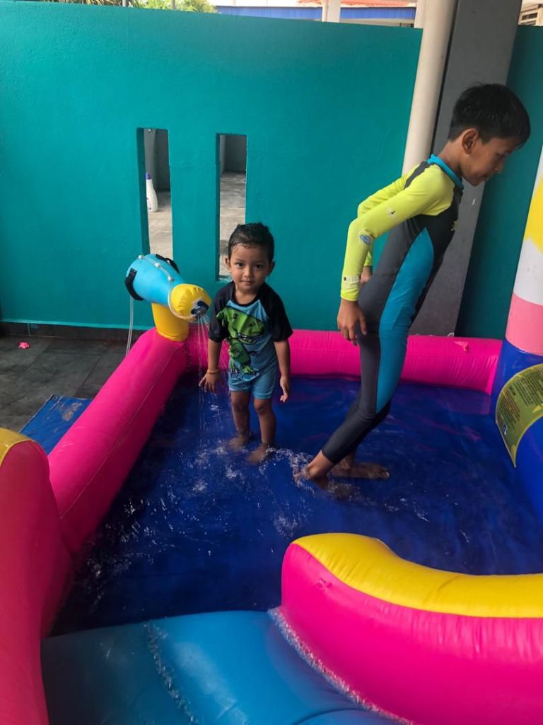 When it comes to birthdays, my sister is the bomb! She just loves planning out birthday bashes and celebrations. She is that good. She rented this water bouncy castle that costs RM250/24 hours for the kids to play. The food spread was nice too with nasi ayam, laksam, pizza, tarts, jelly and the most delicious teh ais kaw with cincau.