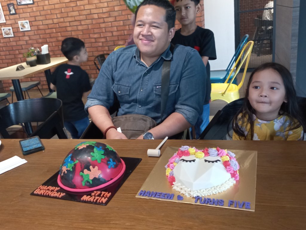 I wish I had more days off to just enjoy the hotel facilities and cafes. Alas, I have other matters to attend to. We checked out at 11 am the next day and I bought the birthday cake from Marriot’s in house cafe – The Oracle. It was an RM88 Orange Chocolate mousse cake yang tak sedap. So, jangan beli. Ha ha ha.